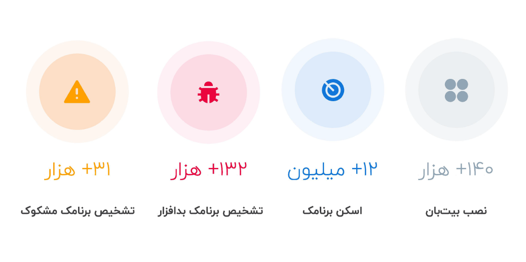 از زمان انتشار اپلیکیشن ضدبدافزار بیتبان، بیش از 1 میلیون و 250 هزار نسخه یکتا از برنامههای مختلف توسط ضدبدافزار بیتبان اسکن شده، که نزدیک به 70 درصد بدافزارهای موجود در آنها در زمان اسکن اولیه توسط بیتبان شناسایی شدهاند.